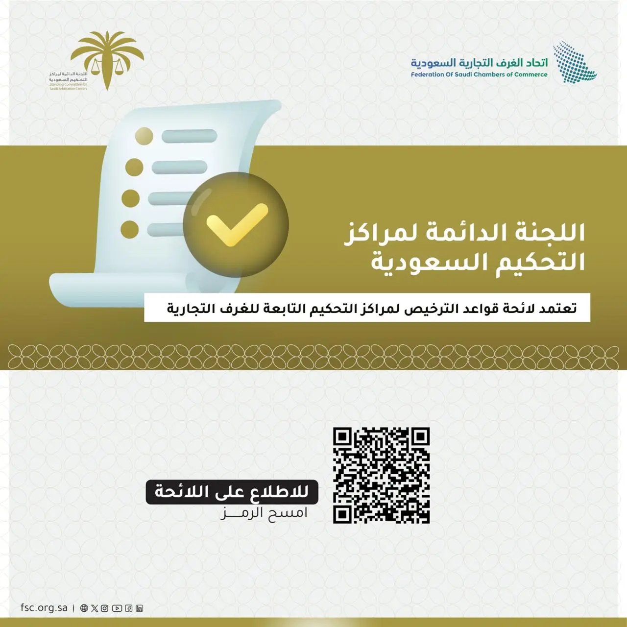 اللجنة الدائمة لمراكز التحكيم السعودية تعتمد لائحة قواعد الترخيص لمراكز التحكيم التابعة للغرف التجارية.