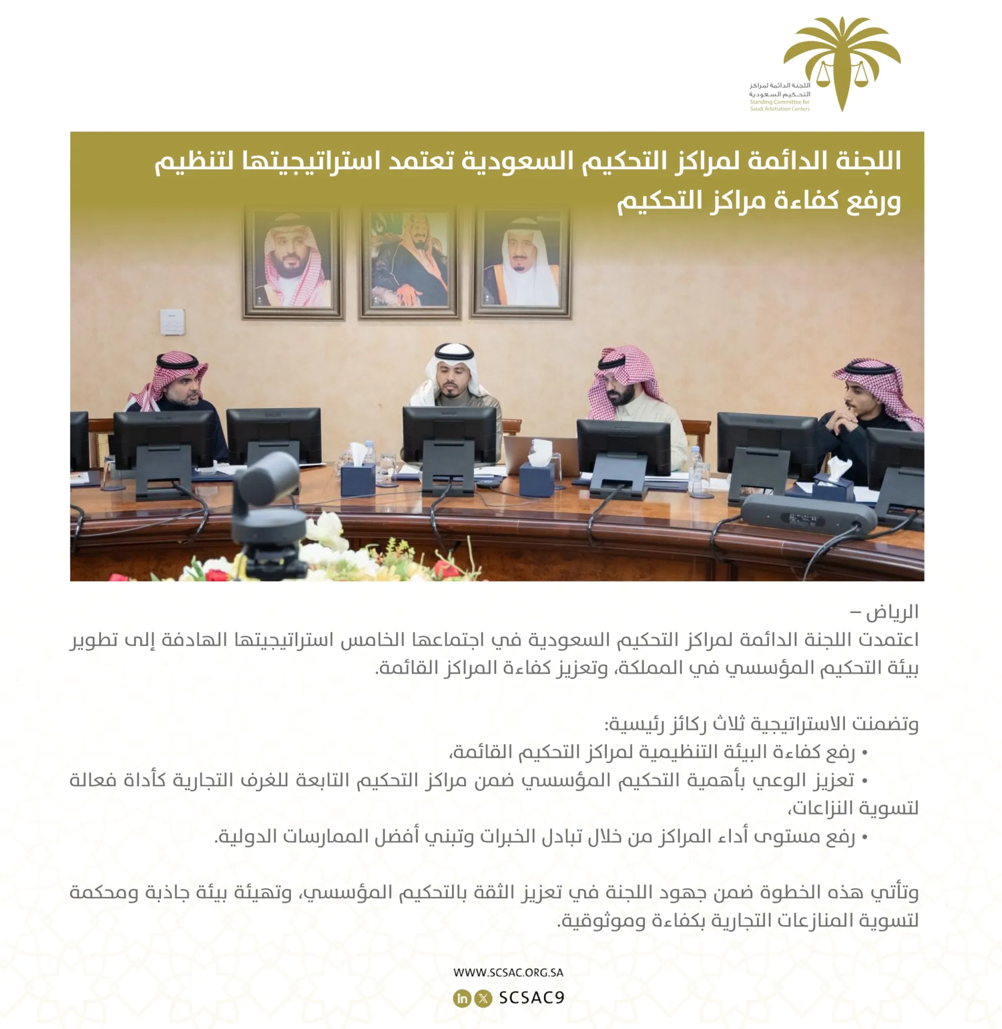 اللجنة الدائمة لمراكز التحكيم السعودية تعتمد استراتيجيتها لتنظيم ورفع كفاءة مراكز التحكيم